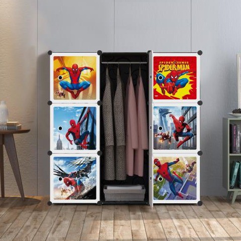 Spiderman Black 9 Cube Almari Budak Lelaki Kanak2 Lelaki Rak Rack Kain Baju Hanger Wardrobe Cabinet Clothes Shopee Malaysia