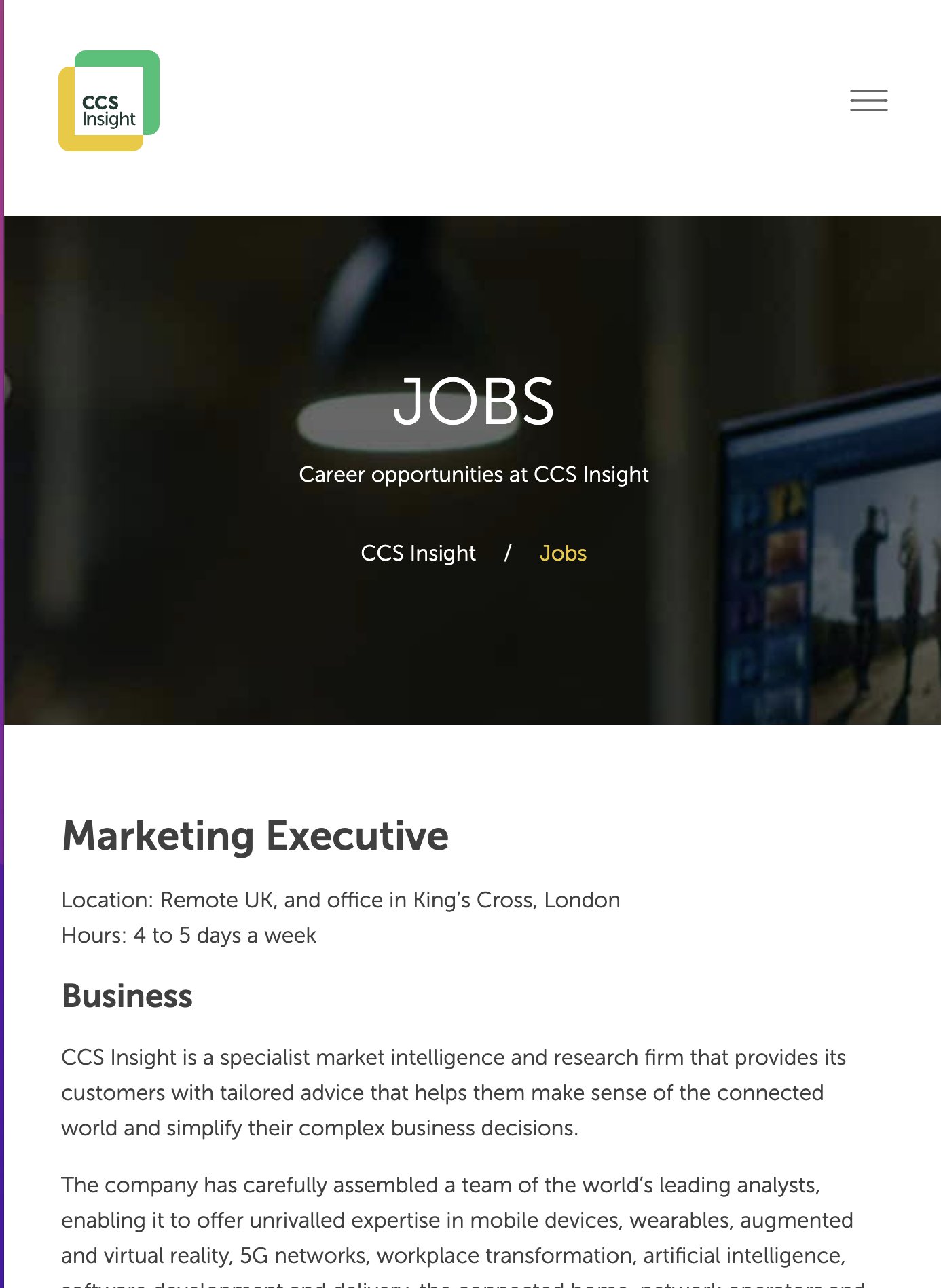 Ben Wood On Twitter An Opportunity To Join Ccsinsight We Re Looking For A Marketing Executive To Join Our Team To Help Promote Our Products Support Our Social Media Activities Help With